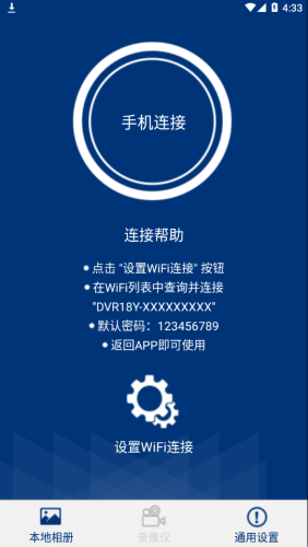 行车录像18Y 应用是和WiFi版的行车录像仪配合使用,手机通过Wi-Fi连接WiFi版行车录像仪,
