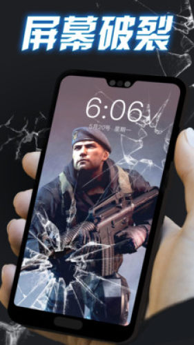开启应用,设置碎屏特效。用手指触碰屏幕时听见”砰“的一声,屏幕玻璃”碎裂“了。