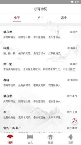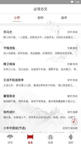 中小学必背古诗文全文app下载,为广大中小学生打造的古诗文学习背诵工具,中小学必背古诗文全文app汇聚海量古诗文内容,文章背景专业解析应有尽有,欢迎下载。