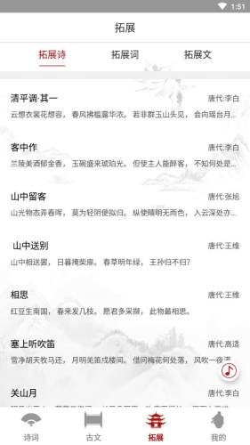 本APP定位为—“您的古诗文随身口袋” 随身带着一个古诗文库,你可以随时背诵,查看,游览。