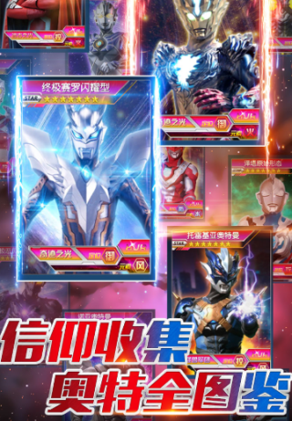 1、角色收集,奥特世界尽收囊中:童年回忆奇迹再现,赛文、迪迦、赛罗、特利迦各世代奥特曼重新集结,奥特曼角色和怪兽全员可收集。