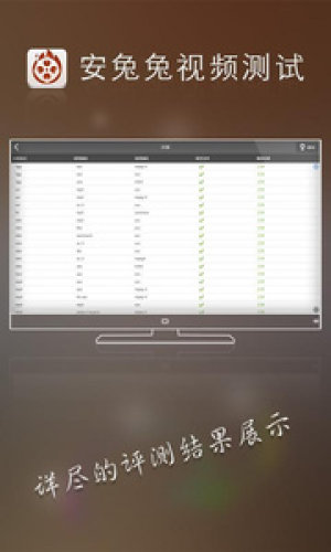 安兔兔视频测试帮助用户用于对于绝大多数安卓设备评判影音播放设备的视频播放性能,特别是电视盒的解码能力进行测试。既能检测出设备支持的视频播放格式,又能检测出播放质量;通过评分可以让用户直观的对比出各个设备播放性能的优劣用户只要点击屏幕上的“视频测试”图标就开始测试,测试s流程如同观看一个视频片段,视频播放完毕即完成测试,操作简单易行。