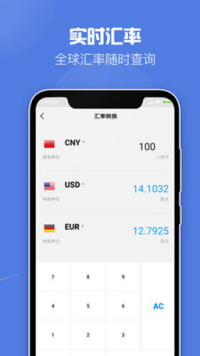【汇率计算】汇率实时更新、全球币种之间任意切换。
