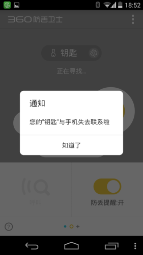 担心小孩子会走丢?宠物会乱跑?心爱的物品会找不到?让灵巧便携的防丢卫士照看他们的安全吧!无论是小孩子,宠物还是贵重物品,绑定防丢卫士后,若超出设定的范围,您的安卓设备便会发出提示,并可精准定位他们所在的位置。配备防丢卫士,随时谨防丢失,看护您心头至爱,从此不远离。