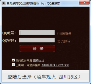 自助点亮QQ丝路英雄图标可以数秒就点亮丝路英雄qq图标,使用简单运行后登陆帐号后,就能帮助你快速亮点该游戏图标。