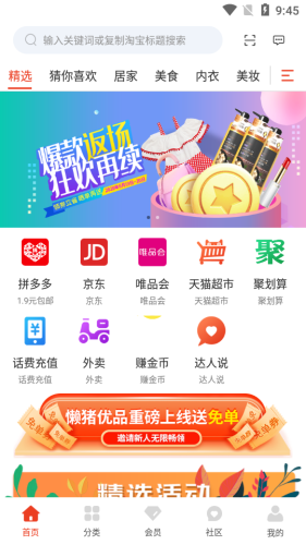 懒猪优品app,专为购物爱好者打造的优质购物商城。聚合多个电商平台优质商品,衣食住行全包括,海量优惠券免费领取,还有各种秒杀专场,等你来购。