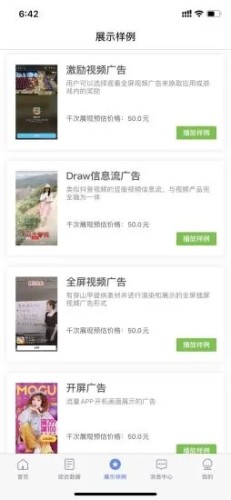 5、支持在线播放样例,各个品牌的广告样例视频能够在此直接播放;