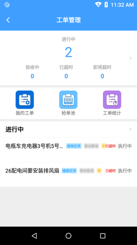 工单管理、抢电池、设备管理、设备信息