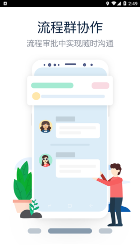 【即时通讯】以企业通讯录为基础,通过单聊、群聊、短信、电话等功能快速进行企业内的协作沟通;