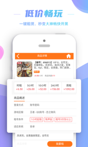 3、低价畅玩:一键租赁,秒变大神畅快开黑