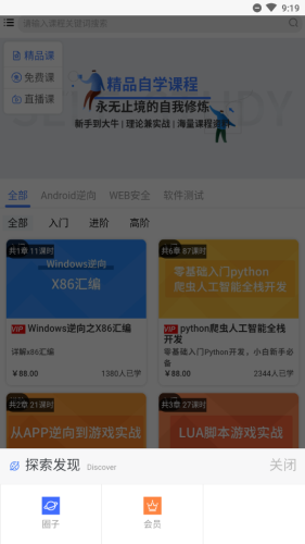 课程覆盖从移动端安全、web安全到windows安全等专业,立足于实用性、高效性、专业性,以用户需求为主的方式建立课程体系,为用户提供丰富的学习内容,包括课程、文章、视频、互动社交等。