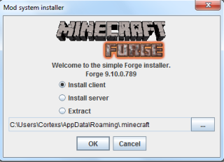 Forge采用了安装器安装,只需要定位你所需安装的.minecraft文件夹即可自动安装。