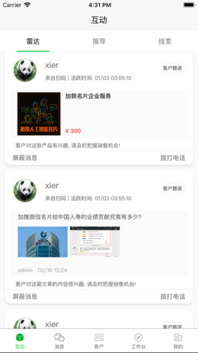 3. 管理在线:赋能:通过在线共享的知识库,文档库,话术库,营销视频库,宣传手册库,把公司的服务推广能力赋能给每一个销售。