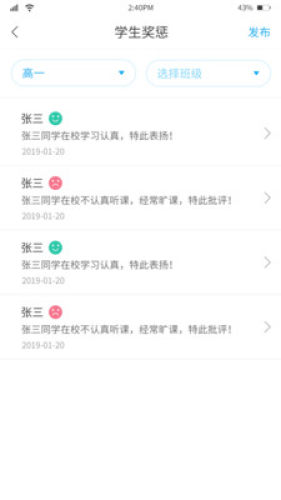 3.快捷通知:作业布置、学校公告、课堂点评