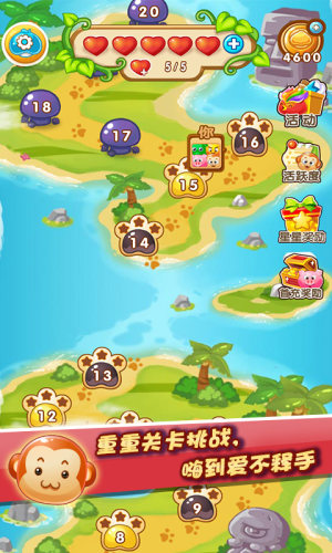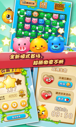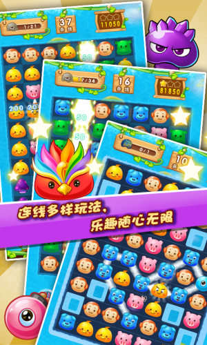 游戏中你将和萌宠们一起作战对抗怪物,突破层层关卡的挑战。得分关卡、清除淤泥、消灭烂泥守卫、收集钻石、拯救小伙伴,多样玩法,乐趣随心;全新模式精彩登场,金币道具爱心奉献,超萌激爽不断。