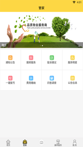 通知公告、报修服务、投诉建议、服务明星