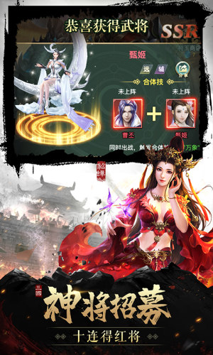 3、王者对决,巅峰竞技,硝烟四起,挑战全服玩家,根据对手的能力来搭配武将的阵容,让每一个卡牌人物发挥最大的作用。