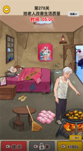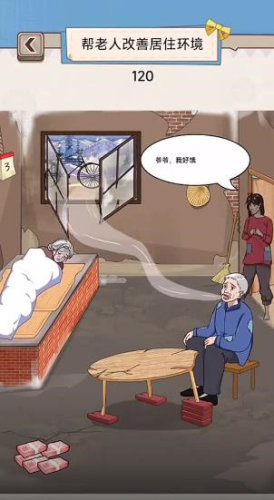 一款新颖的益智找茬游戏,不像传统的找茬游戏,让你对比两幅画面有什么不同,或者找出一些不符合当前场景的东西。在《看望老人》这款游戏中,你需要使用养老金,帮助舍不得花钱,在冷风中冻得瑟瑟发抖的孤寡老人改善生活,快来帮老人做点什么吧。