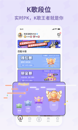 4、斗歌排位--1v1刺激排位,唱歌冲段连麦交友,一站式搞定