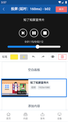 知了知屏支持在移动管理端上传、发布内容及使用大屏画板等功能。