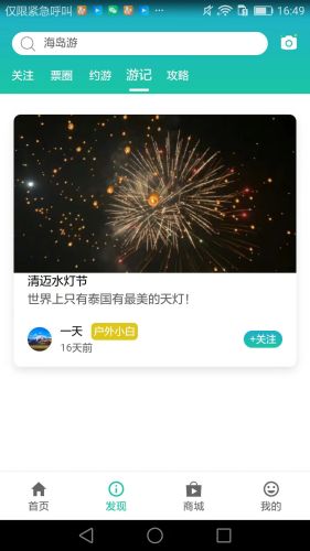 “发现”板块主要是分为“票圈”、“约游”、“游记”、“攻略”四个部分,满足用户在这里分享旅行相关的照片、视频、游记的记录,查询旅行攻略,自发组队约伴旅行,自发召集活动等体验功能。