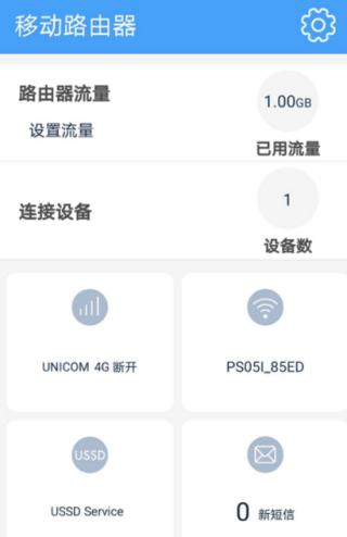 可以看到如下基本信息:流量使用情况 设置 连接设备数。