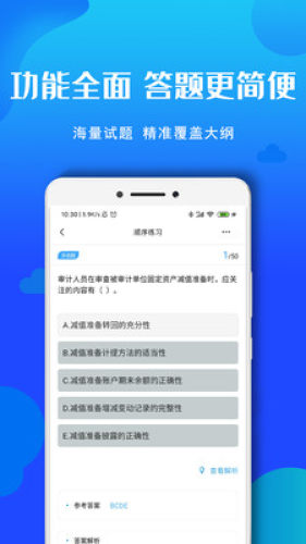 审计师考试题库app,审计师专业考试题库,支持考试模拟、在线笔记、错题本、题库练习等功能,随时随地轻松备考。平台提供丰富题库,精准覆盖考试大纲,解析详细,帮助用户轻松掌握解题思路。