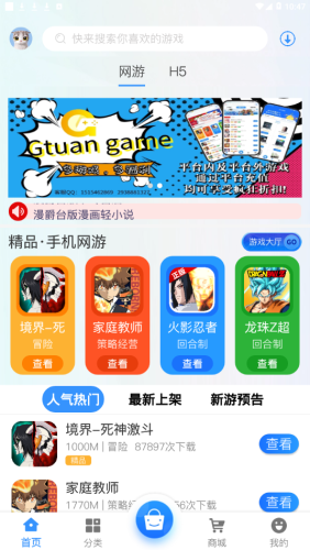 九游游戏中心下载手机版26.3M123878人在玩新一代安卓游戏下载神器《九游游戏》客户端,免费为玩家提供最全面、最新、最热门的安卓游戏和资讯;九游游戏中心同时集成了完善的游戏下载与应用管理功能,还有更方便更顺畅的浏览体验,绝对是安卓玩家们的必备下载神器!