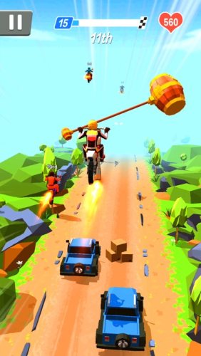 1、用不同的武器和道具,攻击其他的摩托骑手!