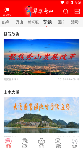 翠翠秀山app,秀山县新闻传播服务窗口。软件拥有新闻头条、社区生活、政务服务等功能,支持个性化订阅、高速浏览,全方位满足各个群体需求。