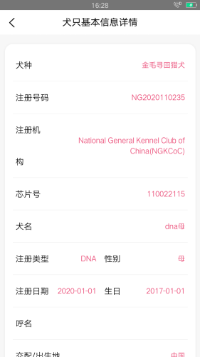2、本犬只的父、母犬均已在NGKC进行了DNA注册,需提交配种证明,方可进行新生犬注册;