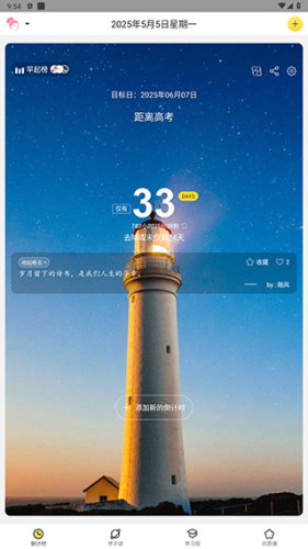 1、高考考生必备工具,功能齐全,比较不错的锁屏倒计时+励志金句,随时掌握与高考的距离,也可更高效安排学习计划;