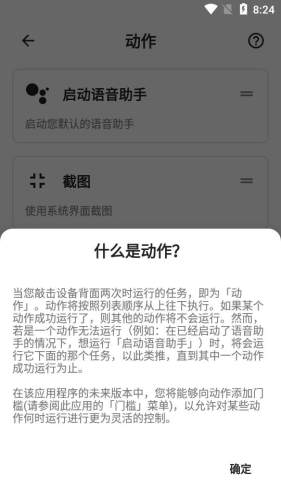 在“动作”菜单中选择要触发启动的应用,轻敲两下手机后背即可触发设置的应用(支持息屏,需要手动开启)。