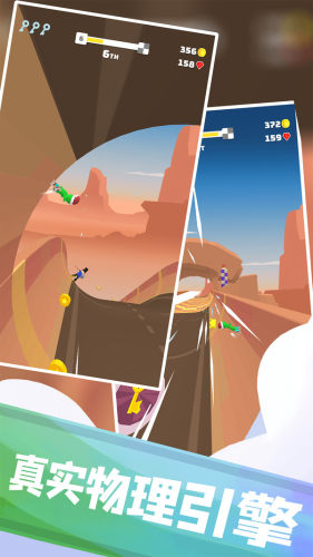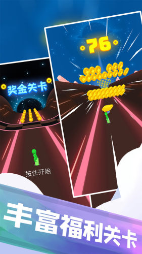 很容易上手的竞速游戏,画面非常绚丽,玩家将操控一个小人踩上独轮车进行跑酷,在游戏过程中有许多金币需要捡,收集足够的金币可以帮你兑换道具和皮肤。
