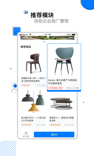 通过名片展示自我的同时,给目标用户呈现自己家的商品,通过配置推荐商品就能快速的实现