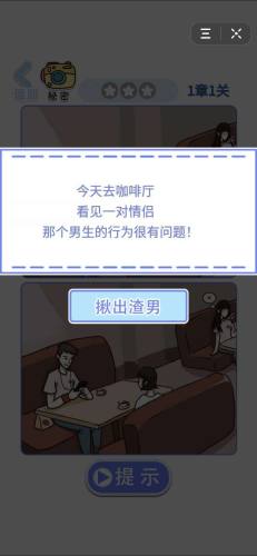 闭嘴你有问题是一款十分有趣的恋爱解谜找茬游戏,玩家可以在剧情的细节中找到自己伴侣出轨或有小秘密的地方,直接指出来!维护自己的权益。