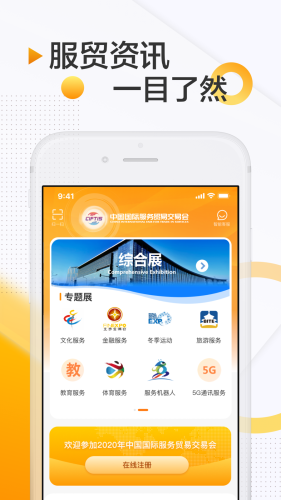 提供1个综合展、8个专题展、N个功能服务区的快捷入口,展示服务贸易最新公告和资讯,方便用户随时随地了解服贸会的动态,并支持离线访问。