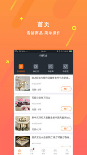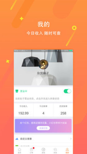 多数据查看经营状况,语音提醒接单,随时有周边配送员抢单,随时上下架商品,商品价格修改,商品库存修改。