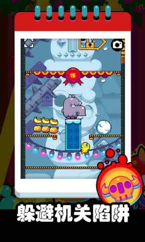 一款竖版跳跃跑酷过关小游戏,复古街机画风+点击跳跃过关风格的游戏内容让游戏既易于上手,又不会让玩家在上手后觉得无聊。游玩时玩家需要在跳跃过程中收集不同类型的水果以用于保存或者其他游戏内消耗,但是一定要注意,水果的收集有时会伴随着风险!奇奇怪怪的陷阱和怪物可不会愿意让你轻松拿到可口的水果哦!
