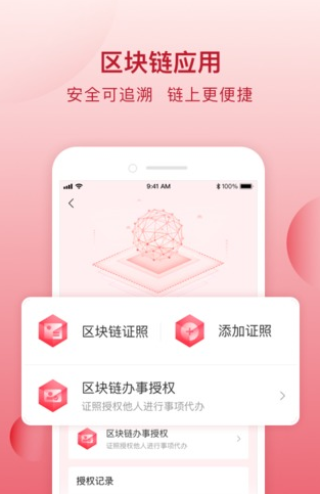 6、区块链办事:基于区块链技术,办事人无需携带相关证照原件,扫脸即可进行常用事项的办理,也可授权他人代办。办事环节信息“上链”,全过程留痕可追溯,办事更简单、服务更安全。