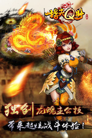 更重要的是,武将不是摆设,可以上阵、出战,与玩家主角一同并肩作战;更更重要的是,并非只有一个武将可以出战,而是可以同时出战两个武将,加之武将也有职业区分,3人组合,将产生更多的职业搭配、技能组合,让战斗千变万化。三人同时施放的独创龙魂技能,更是克敌制胜、秒杀全屏的神技。