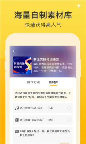 「素材分享」平台提供专属素材包,涵盖众多分类,有萌宠、音乐、影视、生活小妙招、减压等等,助力于打造优质高权重短视频帐号。