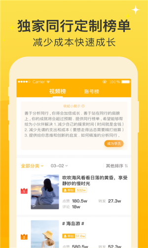 「榜单查询」了解火爆商品与热门视频,了解行业动态;