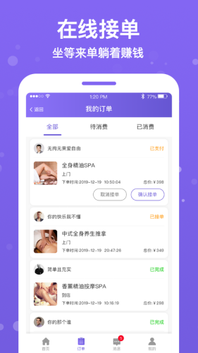 按个摩商户端app,管理神器,轻松管理线上店铺;项目灵活,自主设置服务项目;技师管理,管理调度全国技师;在线接单,坐等来单着赚钱。