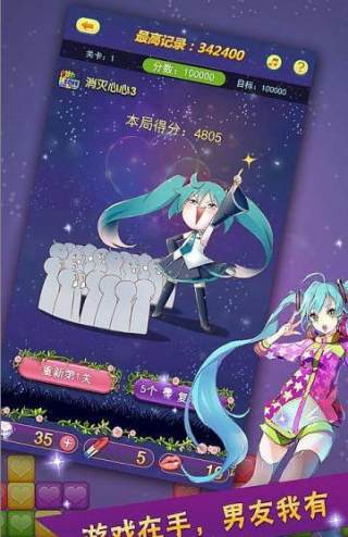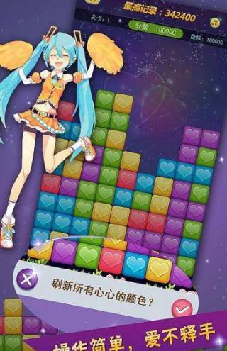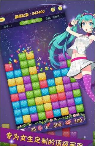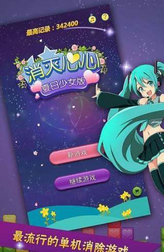 消灭星星3夏日少女版破解版感受消除游戏新的魅力,爱不释手的游戏画面,简单好玩的点击!2014年最受女生喜爱的单机消除游戏消灭星星3夏日少女版夏日新版清凉来袭。绚丽的心心,多彩的界面,伴随着欢快跳动的音符,带给你指尖触碰的爽快感。操作简单,点击两颗同色心心即可消除,一次消除更多,分数越高,奇妙的道具,让游戏更多惊喜。来自星星的你们,岂能错过!