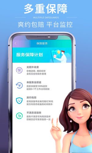 通过平台监控、自营技师,为用户提供优质的服务,努力成为国内最大的在线预约、生活服务平台。