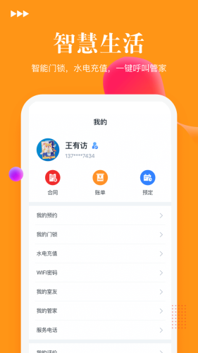 8. 智能门锁:已入住租户可查看公区密码,房间密码可一键滑动开门