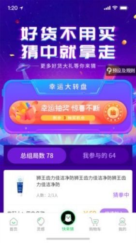 猜货app是一款相当好用并且用的购物神器,猜货app结合了购物与游戏的精华,目标让用户享受购物优惠的同时又体验到游戏的乐趣。