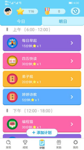 小小计划app,专为儿童打造的计划安排管理助手,帮助用户合理规划时间,制定科学计划安排,让孩子在规定的时间内完成相应任务,从小培养孩子时间观念,养成良好习惯。