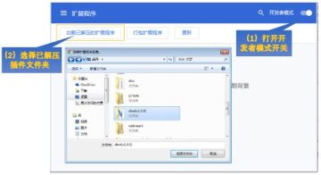 (3)在Google Chrome浏览器扩展程序界面,选择打开开发者模式,选择【加载已解压的扩展程序】,在弹出的窗口中选择已解压的文件夹,注意这里是根目录。